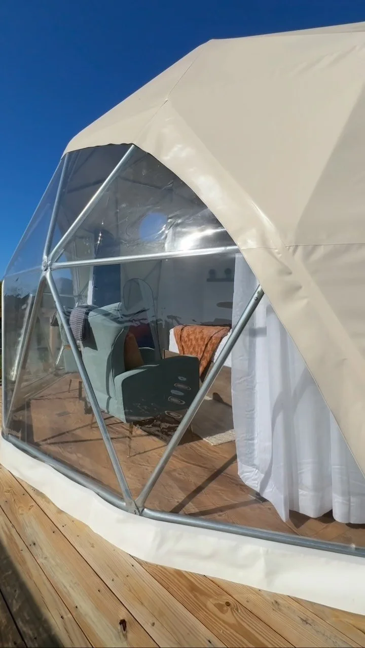 Experience modern farmhouse charm in a unique glamping geodome at Faraway Camp. Take in breathtaking views of the Blue Ridge Mountains, Shenandoah National Park, Skyline Drive, Luray Caverns, Shenandoah River, wineries, and breweries — all with creature comforts.